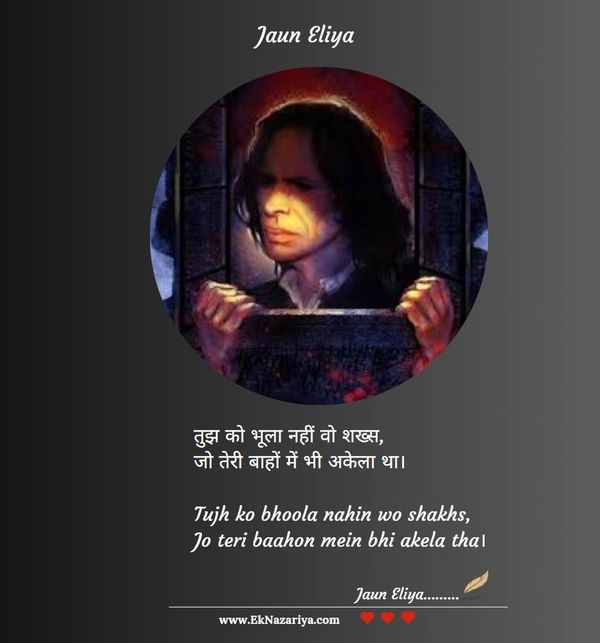 Jaun Elia was a famous Urdu poet, born in 1931 in Amroha, India, and later moved to Pakistan. He is loved for his deep, emotional, and honest poetry. His words often talk about love, pain, loneliness, and the struggles of life.